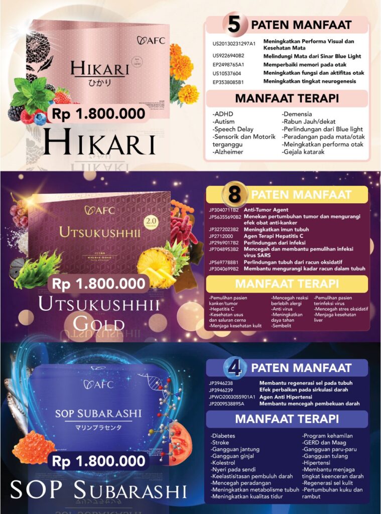 AFC adalah perusahaan farmasi Jepang yang memproduksi suplemen kesehatan dengan fokus pada bahan alami dan teknologi nano.